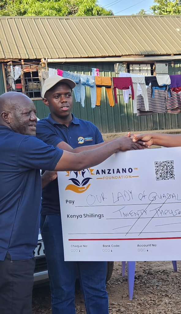 As the day’s activities drew to an end, we shared a delicious cake to symbolize the great time we spent together with the kids. Laughter and joy filled the space as the pieces of cakes were being passed around, each bite adding to the warm and festive atmosphere. At that moment the foundation presented its donations which included dry foods, personal care items, stationeries, clothes and other essentials. In addition, a cheque of Ksh 20,000 was handed over to support the children’s back-to-school shopping in January 2025.